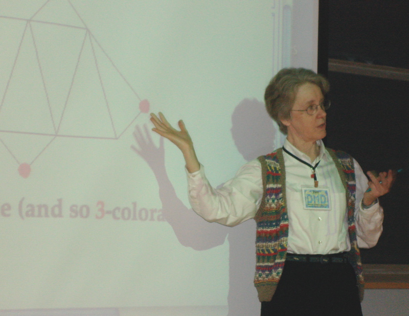 Joan Hutchinson explaining how Hadwiger's Conjecture relates to coloring extensions