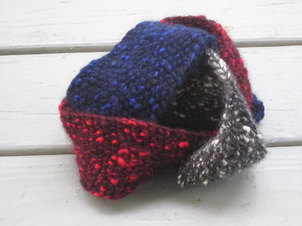 Rigid Borromean rings cannot be made from perfect circles, but they can be made from ellipses that have arbitrarily small eccentricity. This set is made from three Mobius strips.